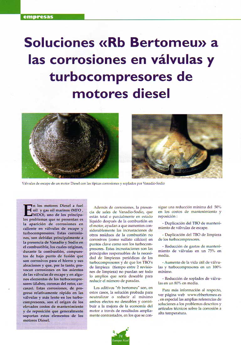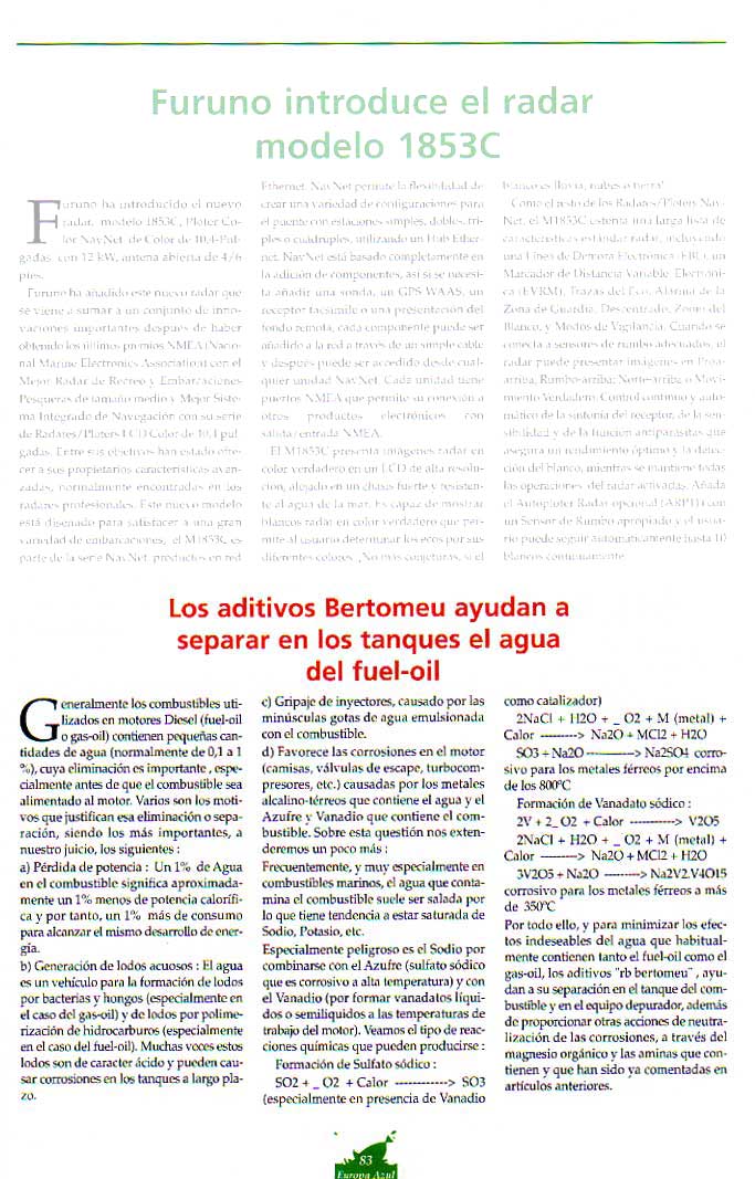 EUROPA AZUL (Nº 77 - Septiembre / Octubre 2003 - Pág. 74) www.europa-azul.com - Europa Azul, S.L. Plaza de Unzaga, 9-2 25600 EIBAR (Guipúzcoa) - Tlfno: 94-4160425 - Fax: 94-4158075 |