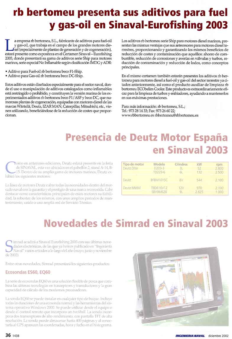 INGENIERIA NAVAL (Nº 799 - diciembre 2002 - Pág. 36) |